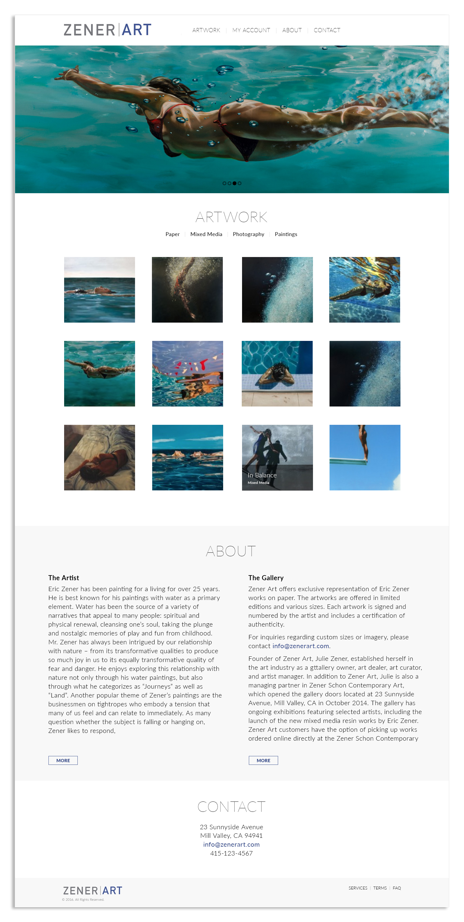 Visual design for Zener Art homepage.